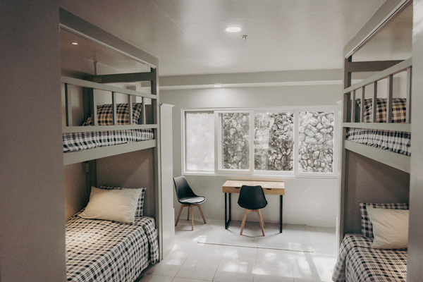 部屋タイプ | 学生寮:1人部屋A、2人部屋A/B、4人部屋A/B(Aは日当たりが良く、Bは窓の外に岩があり日当たりが悪い) シェアハウス:セミシングル |