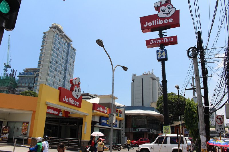 フィリピンのファストフード店ジョリビー、日本食、中華、イタリアンやコンビニまで学校周辺にあります。