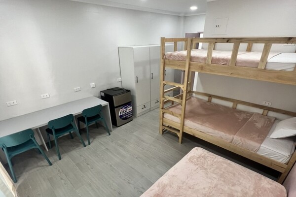 寮は内部寮と外部寮が外部寮は2016年に完成ということでとても綺麗です。学校から徒歩10-15分ほど、24時間セキュリティガードや上の階に夜景が見れるレストラン、また1階にはプールも完備されています。内部寮も外部寮も共に1-3人部屋までありますが、外部寮の3人部屋は親子留学のためのお部屋になっています。